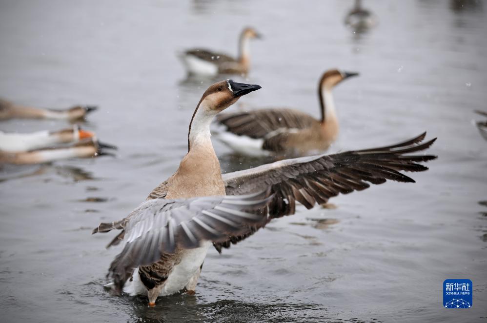 近日,在辽宁省沈阳市浑河上,一群群鸿雁、赤麻鸭、鸳鸯等候鸟迁徙来此栖息。它们成群结队在河面上觅食、休憩,成为冬日里一道美丽的风景线。