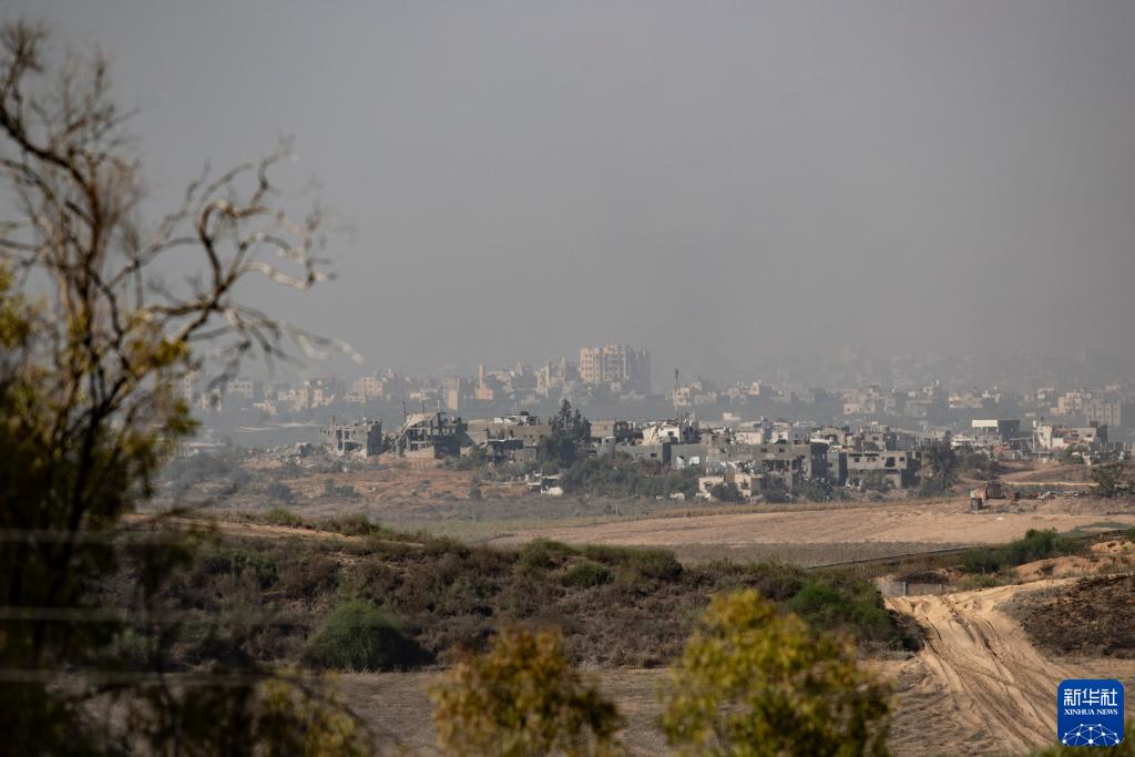 这是11月24日在加沙边境以色列一侧拍摄的停火生效后的加沙北部情况。
