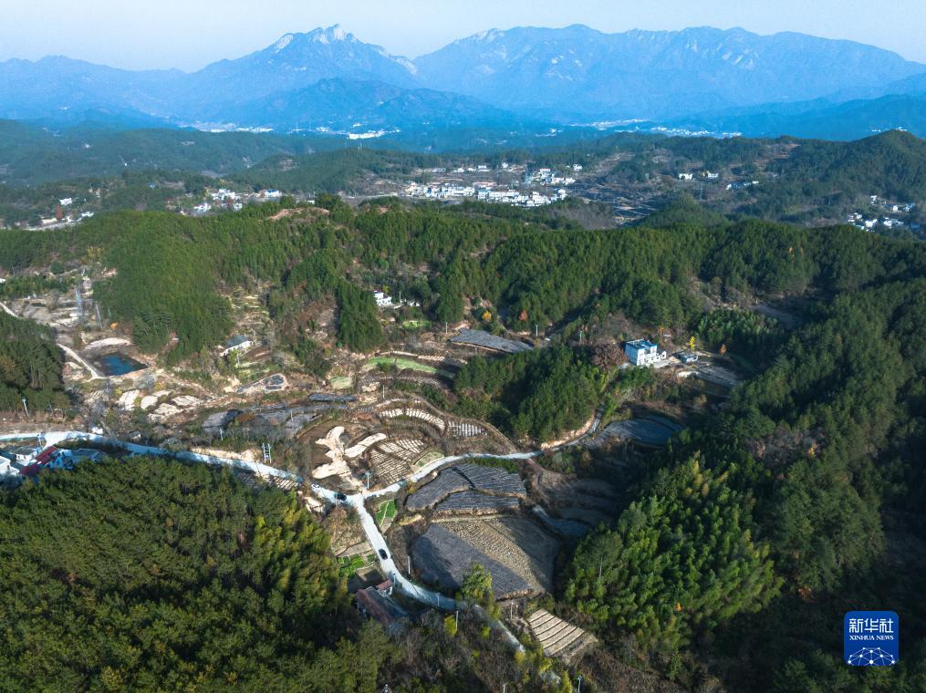 11月23日拍摄的湖北省罗田县九资河镇葫芦石村的一处天麻田(无人机照片)。