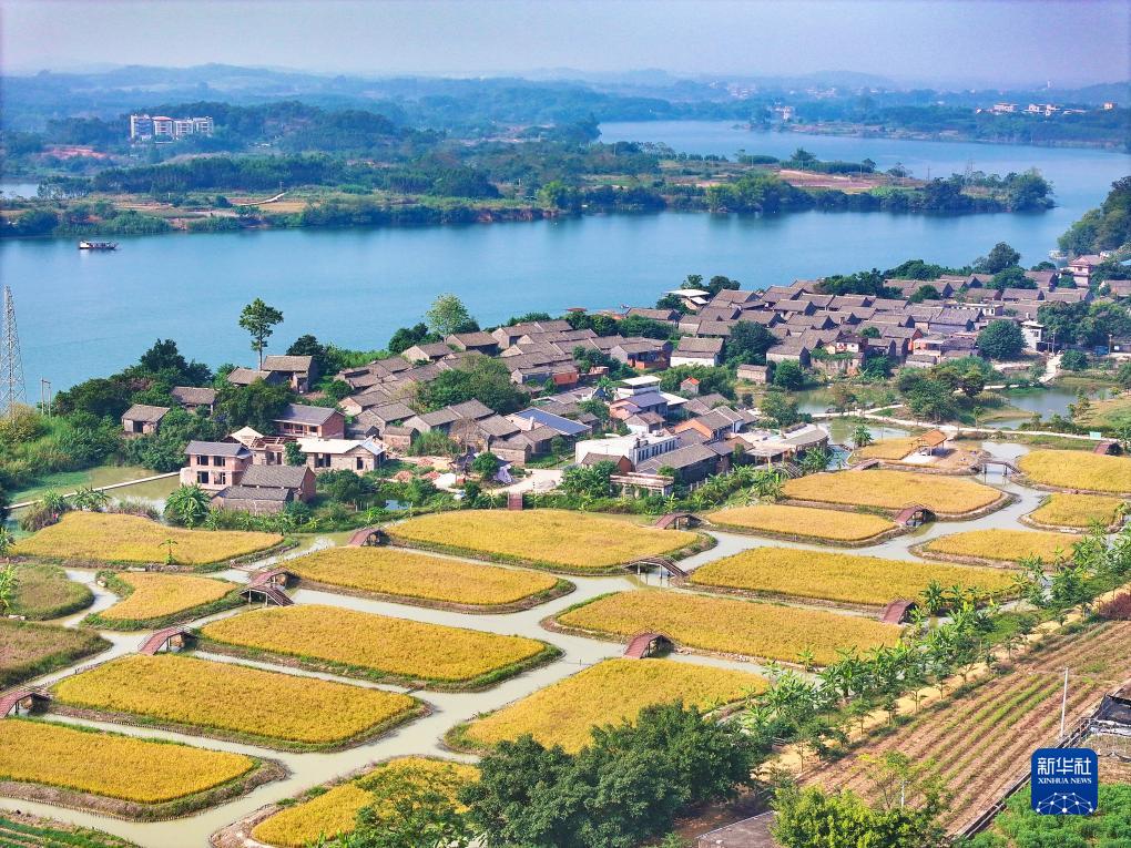 11月23日在广西南宁市江南区江西镇拍摄的稻谷金黄的景色(无人机照片)。