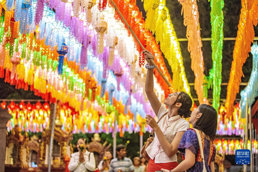 近日,泰国南奔府在哈利奔猜寺举办盛大灯会,吸引游人纷纷前来挂灯留影、祈福许愿。