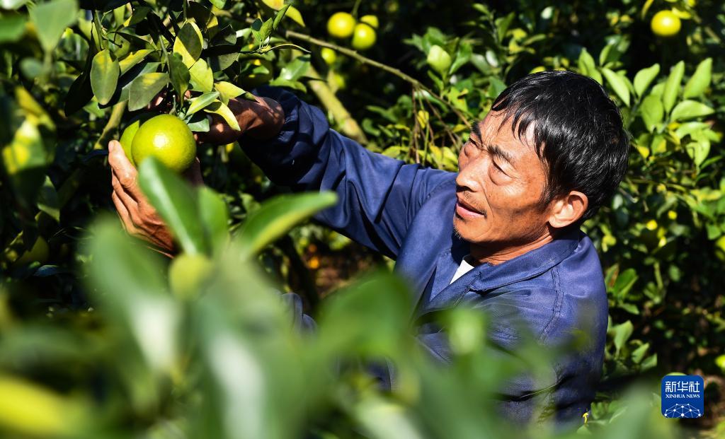 工作人员在琼中黎族苗族自治县的一处绿橙种植基地采摘琼中绿橙(11月24日摄)。