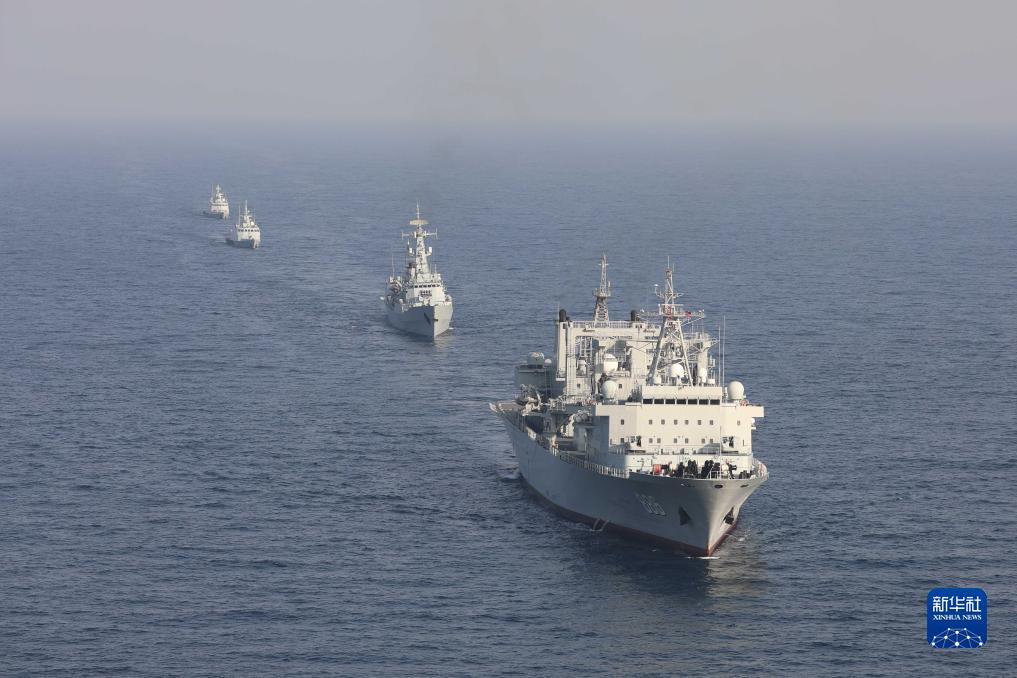 中巴“海洋卫士-3”海上联合演习在阿拉伯海北部海空域举行,双方舰艇组织编队运动(11月14日摄)。