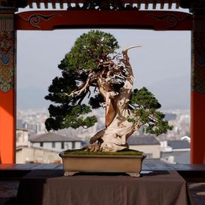 为纪念中日和平友好条约缔结45周年,中日盆栽水石展24日在京都清水寺开幕。尽显自然山水之美的盆栽作品与寺庙古建筑融为一体,吸引了大批游客驻足观赏。