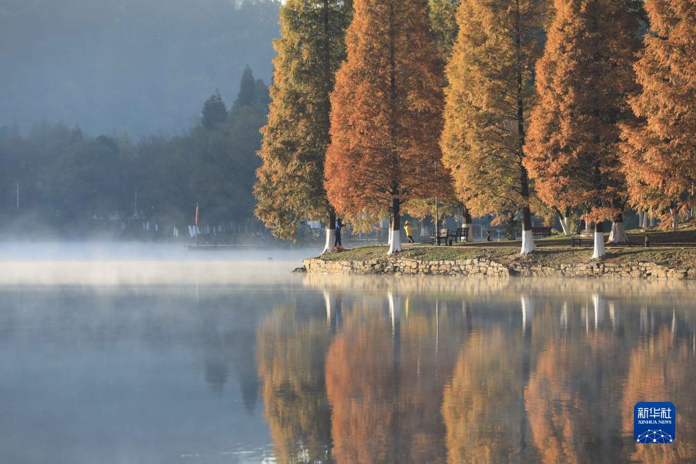 11月17日在贵州省贵阳市观山湖区观山湖公园拍摄的初冬景色。