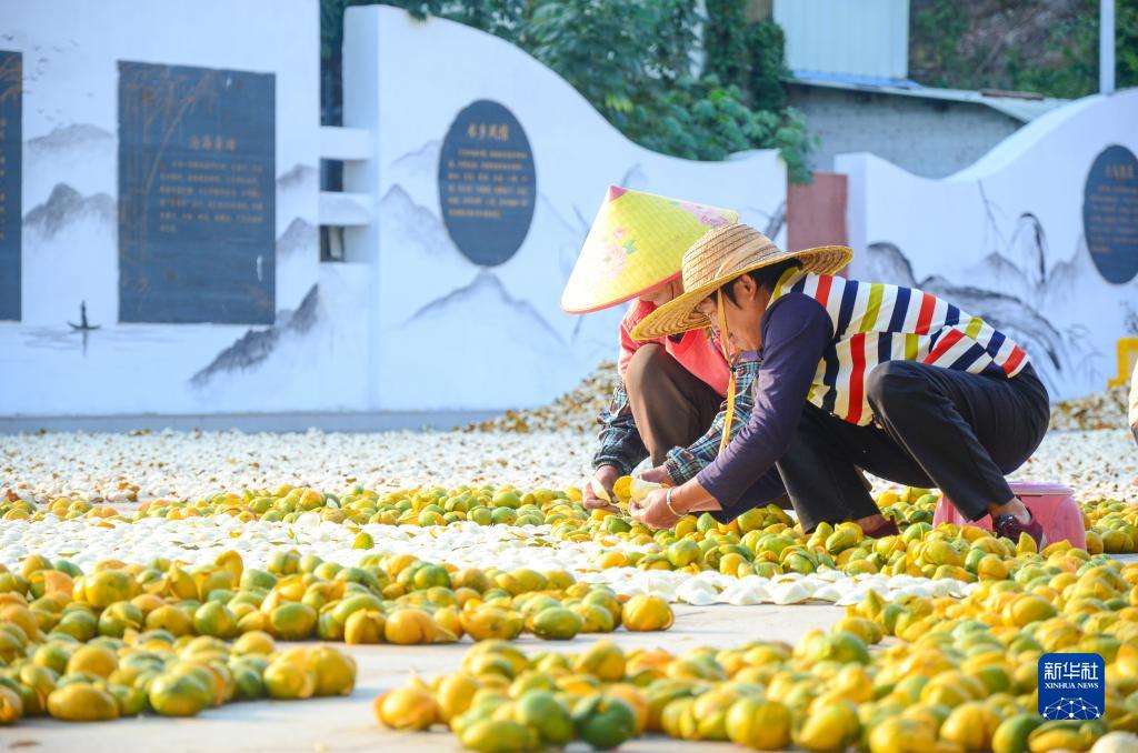 连日来,广东省江门市天气晴好,新会区果农把握有利时机,抓紧晾晒柑果果皮。新会柑经开皮、晒制、陈化等程序后可制成新会陈皮。