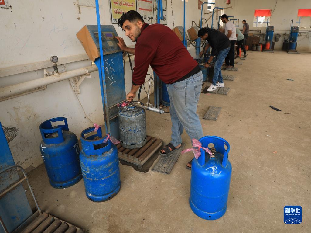 11月25日,在加沙地带南部城市汗尤尼斯,人们为天然气罐充气。