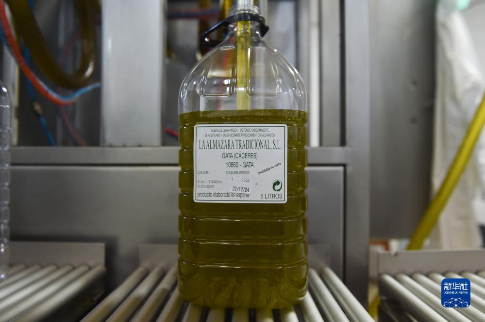 这是11月24日在西班牙卡塞雷斯的一处橄榄油工厂拍摄的橄榄油。