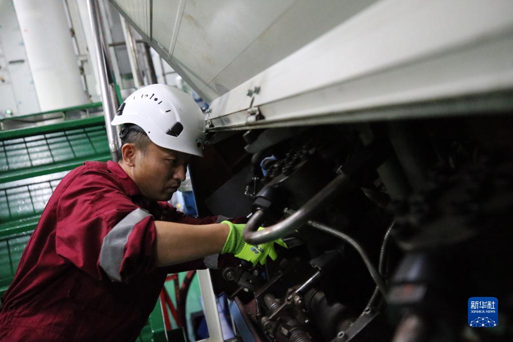 11月26日,“雪龙2”号机工长汤建国在检查设备。