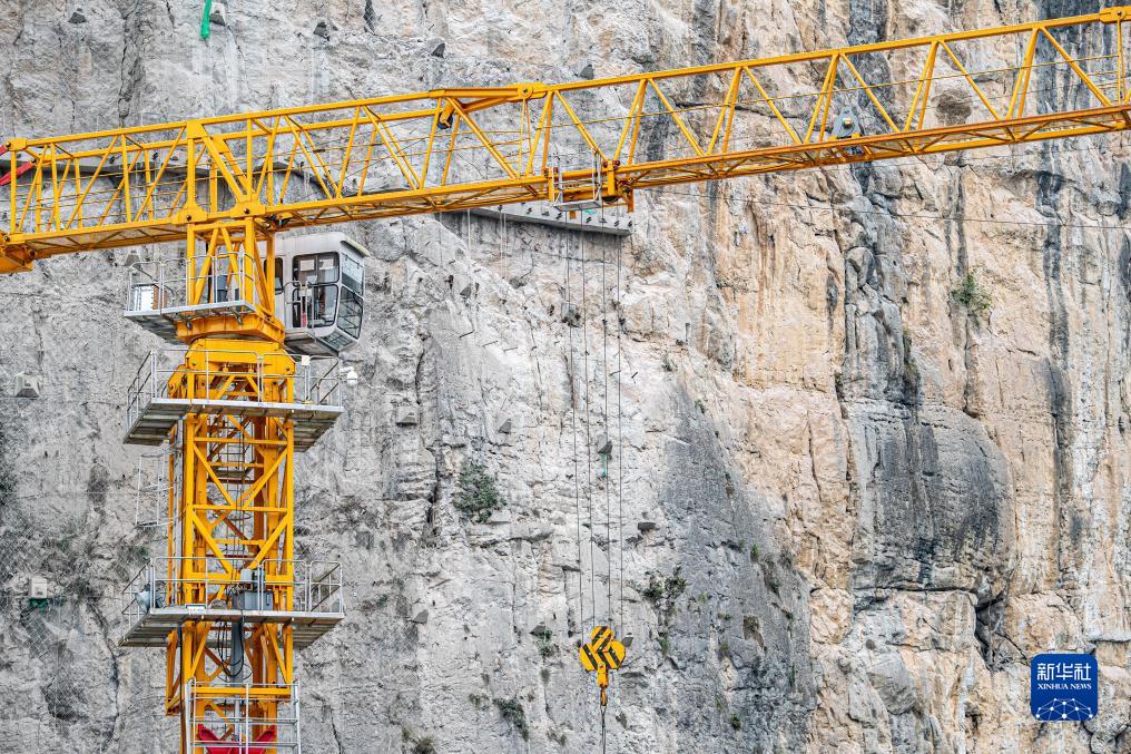 11月26日,在位于重庆市酉阳土家族苗族自治县龚滩镇境内的阿蓬江大桥施工建设现场,工人正在现场作业。