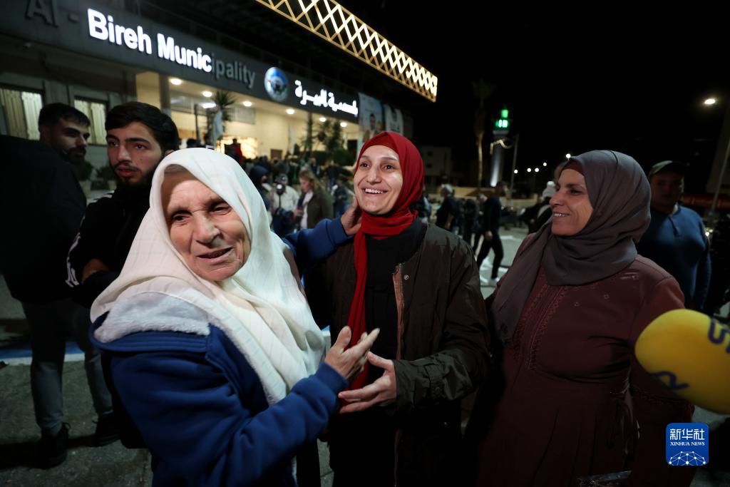 11月26日,在约旦河西岸城市比拉,获释巴勒斯坦被关押人员与亲人团聚。