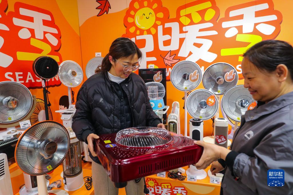 11月26日,市民在河南省信阳市光山县一家超市选购取暖器。