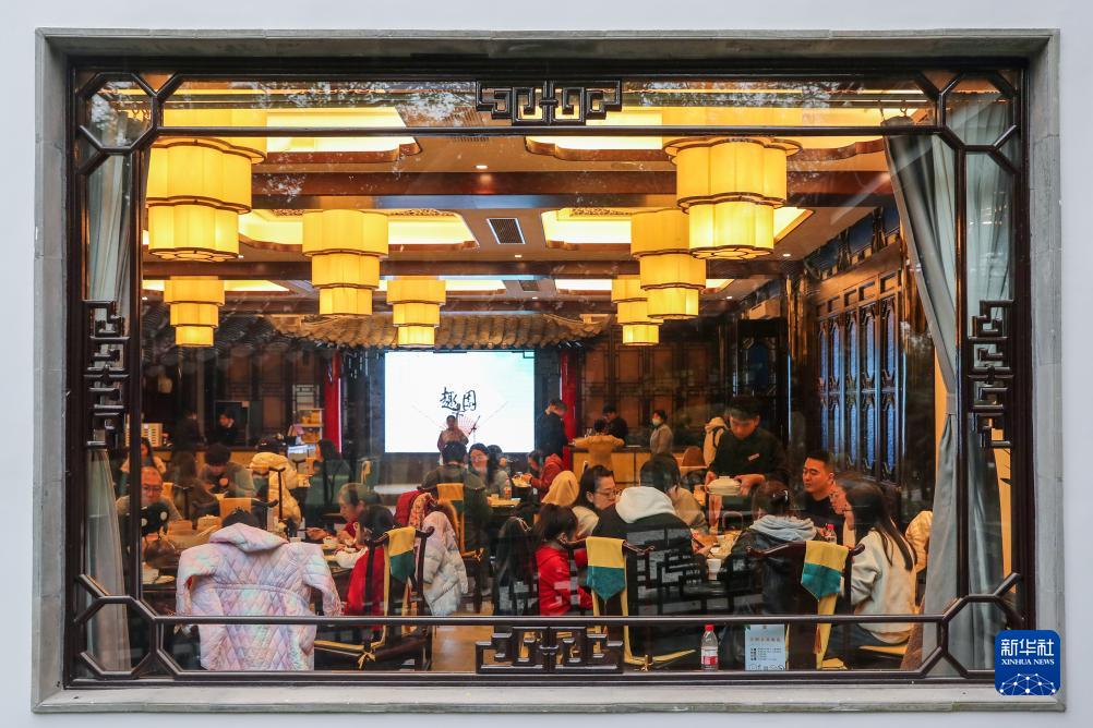 11月26日,市民在江苏省扬州市趣园茶社品味早茶。