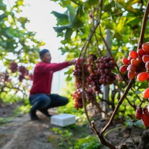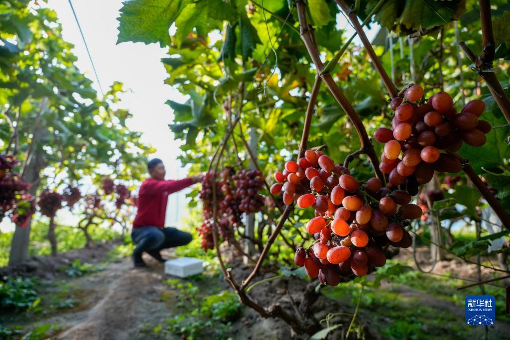 11月26日,游客在河北省滦州市茨榆坨镇芦苇庄村一处大棚内采摘葡萄。