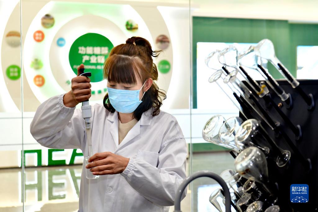 11月26日,在山东香驰健源生物科技有限公司,实验室工作人员在做检测。