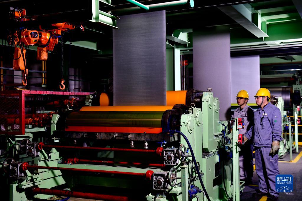 11月26日,在山东新美达科技材料有限公司,工人在镀锌板生产流水线工作。