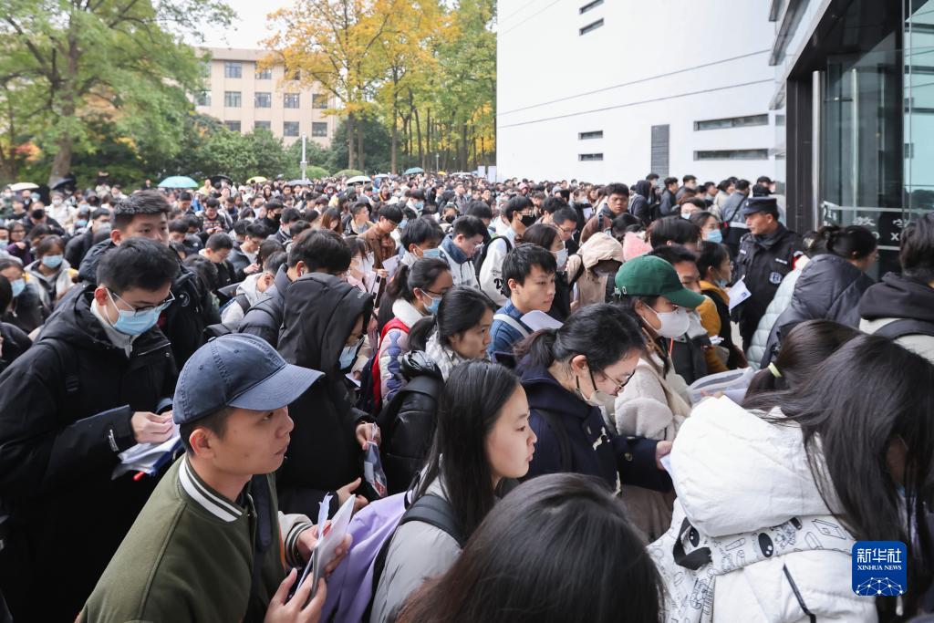 11月26日,在南京林业大学考点,考生进场准备参加考试。