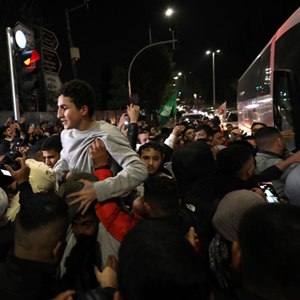 11月26日,载有获释巴勒斯坦被关押人员的大巴抵达约旦河西岸城市拉姆安拉。