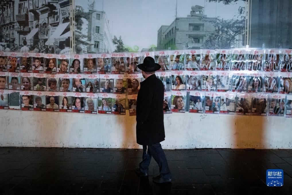 11月27日,在耶路撒冷,一名男子从被扣押人员海报前走过。