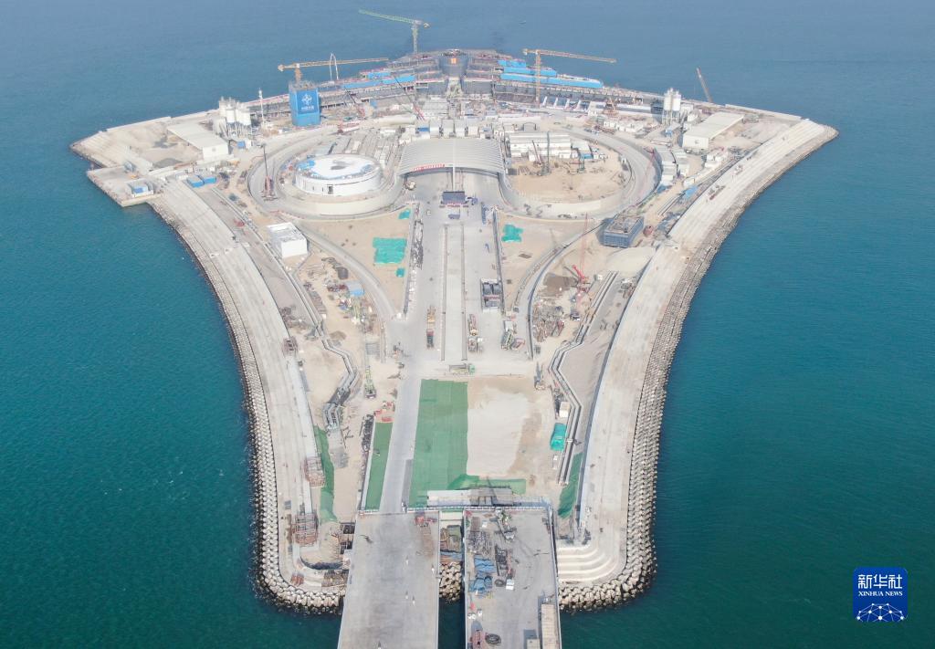 这是深中通道西人工岛,形似巨大的风筝(11月27日摄,无人机照片)。