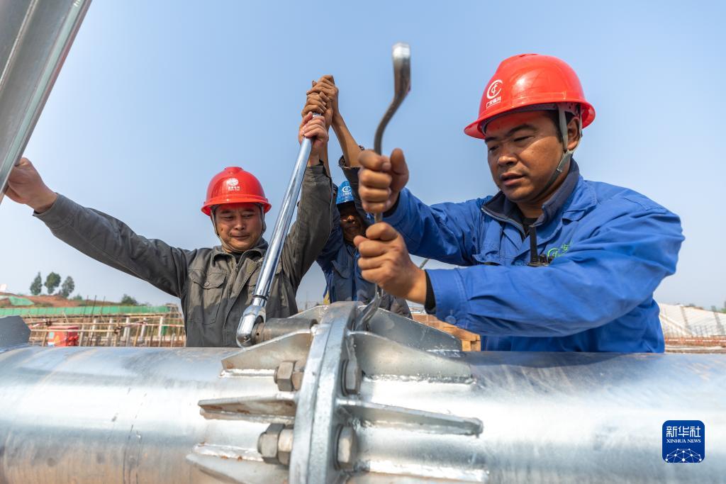 11月28日,在位于重庆市铜梁区少云镇的铜梁1000千伏变电站施工现场,国网重庆送变电公司施工人员在吊装前对构架梁进行检查。