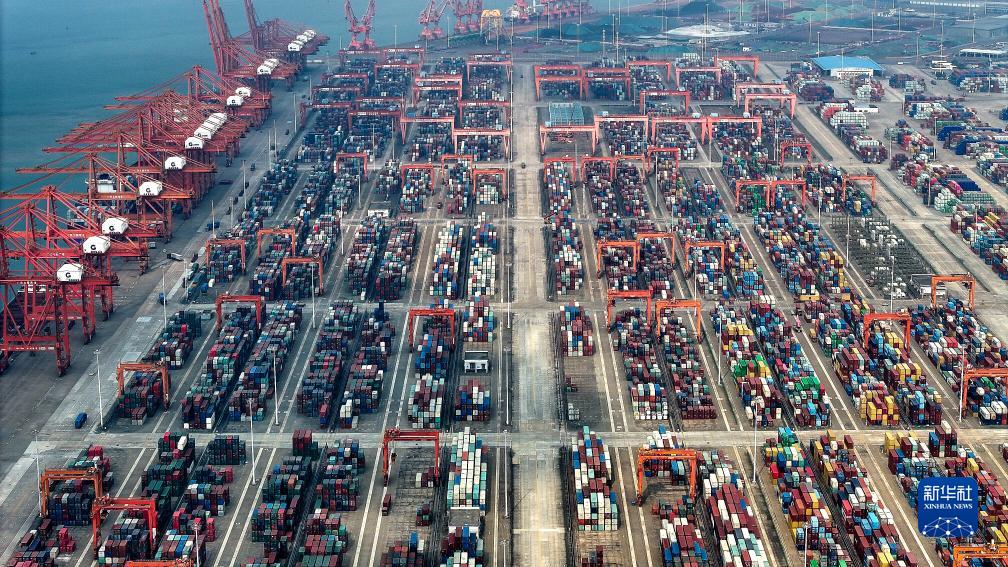 这是广西钦州港集装箱储放地(11月24日摄,无人机照片)。