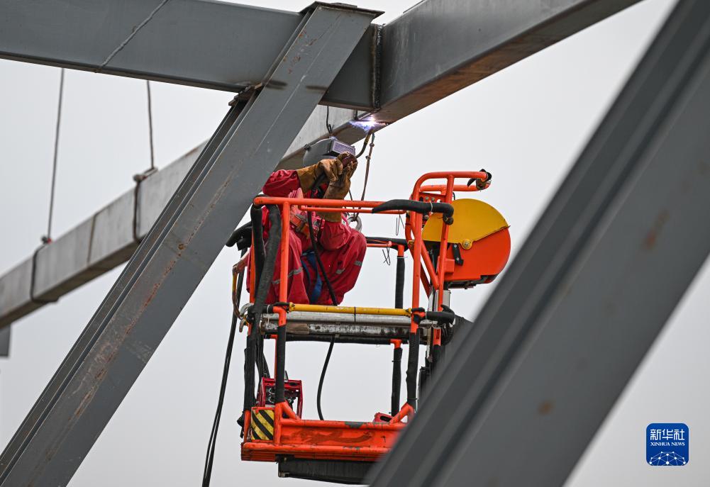 11月25日,工人在位于海南省儋州市的“火山海岸”驿站工地施工。