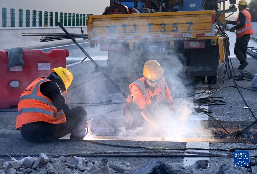 济曲快速路上跨京沪铁路立交桥连续梁转体成功