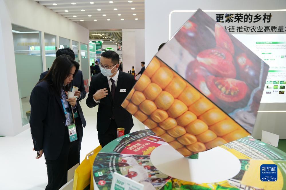 11月28日,参会人员(左一)在先正达集团展台咨询。
