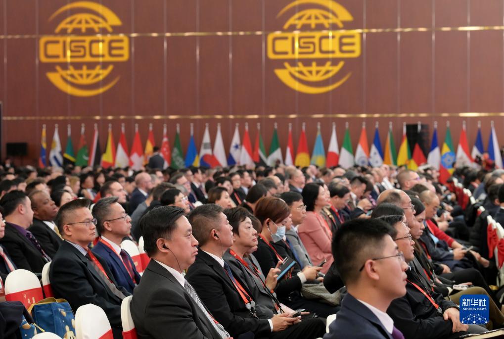11月28日,中外与会嘉宾在博览会开幕式现场聆听主旨演讲。
