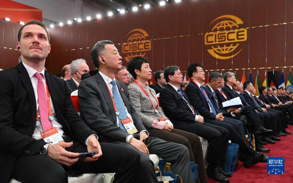 11月28日,中外与会嘉宾在博览会开幕式现场聆听主旨演讲。