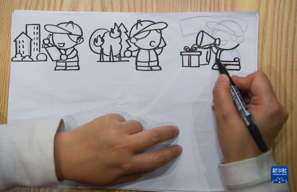11月28日,余白杨在绘制宣传画。