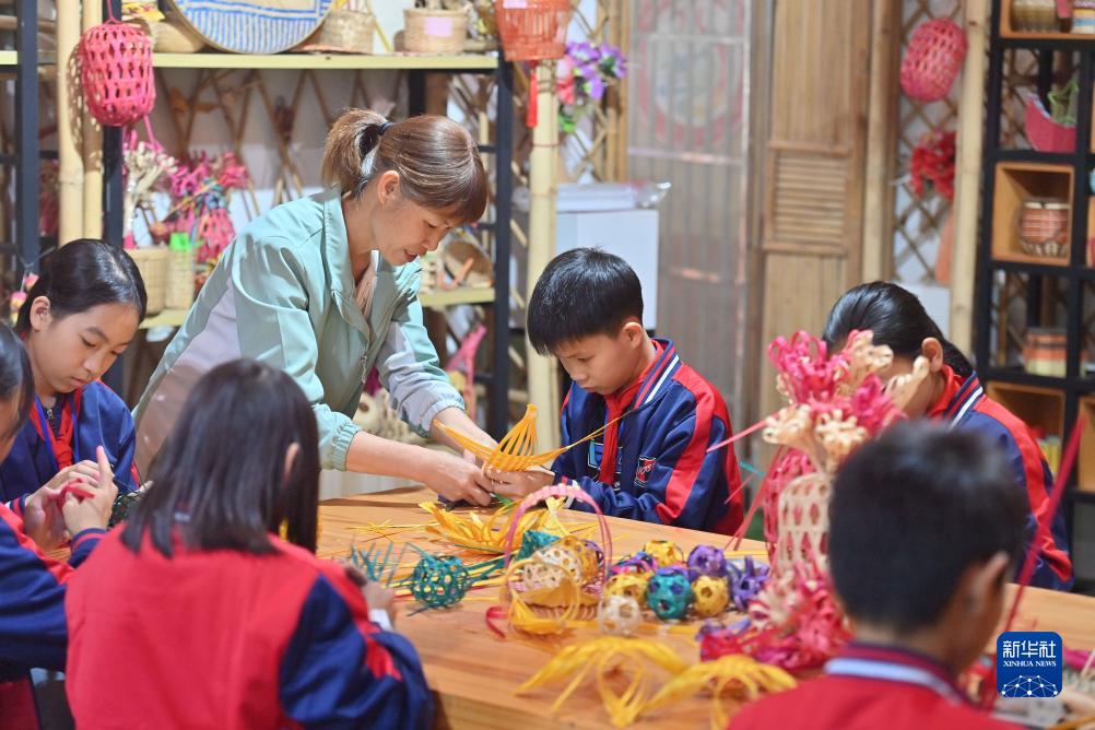 近年来,广西岑溪市南渡中心小学将当地非遗项目——竹芒编织技艺引进课堂,打造特色校园文化,丰富学生课外生活。