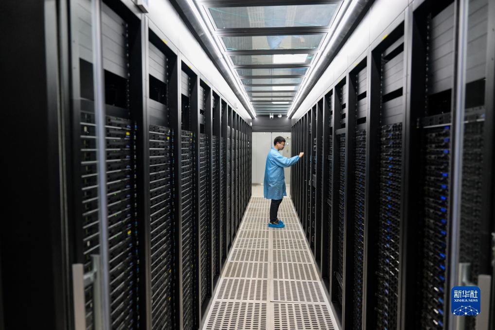 11月28日,工作人员在呼和浩特市和林格尔新区的内蒙古中科超算科技有限公司对设备进行巡检。
