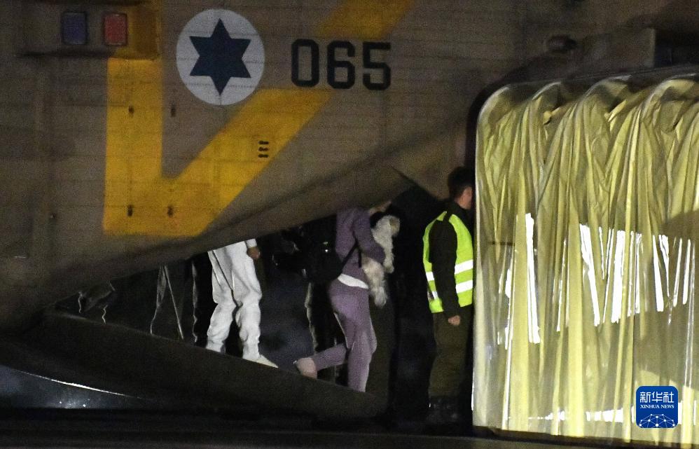 11月29日凌晨,获释的第五批被扣押人员搭乘直升机抵达以色列拉马特甘的一所医院。