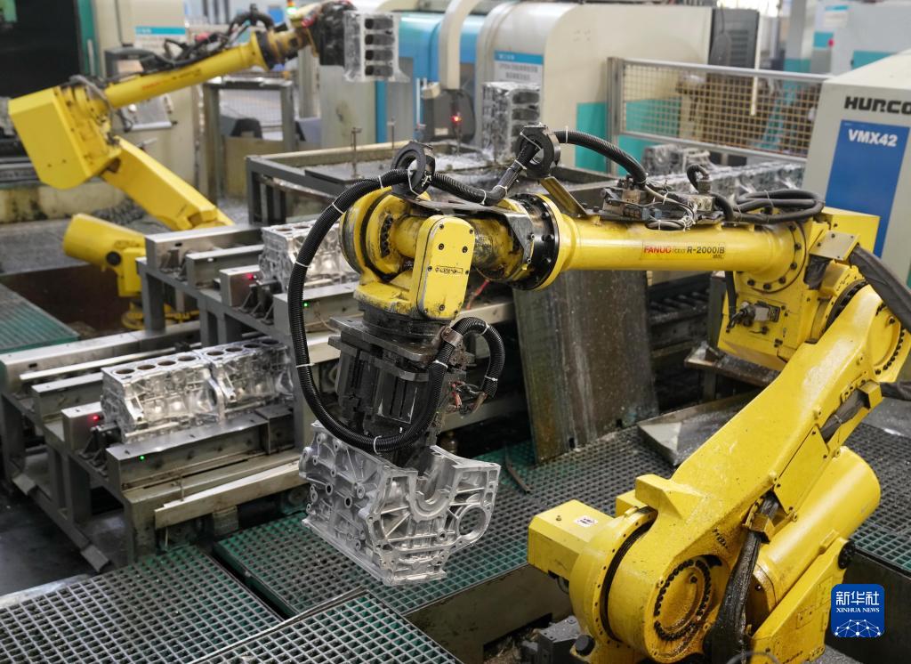 11月29日,河北省顺平县一家汽车发动机缸体企业的智能机器人在工作。