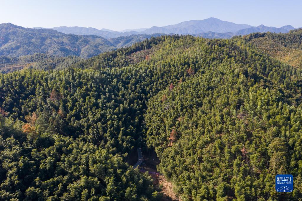 这是11月28日拍摄的庆元县黄田镇高产笋用林示范基地(无人机照片)。