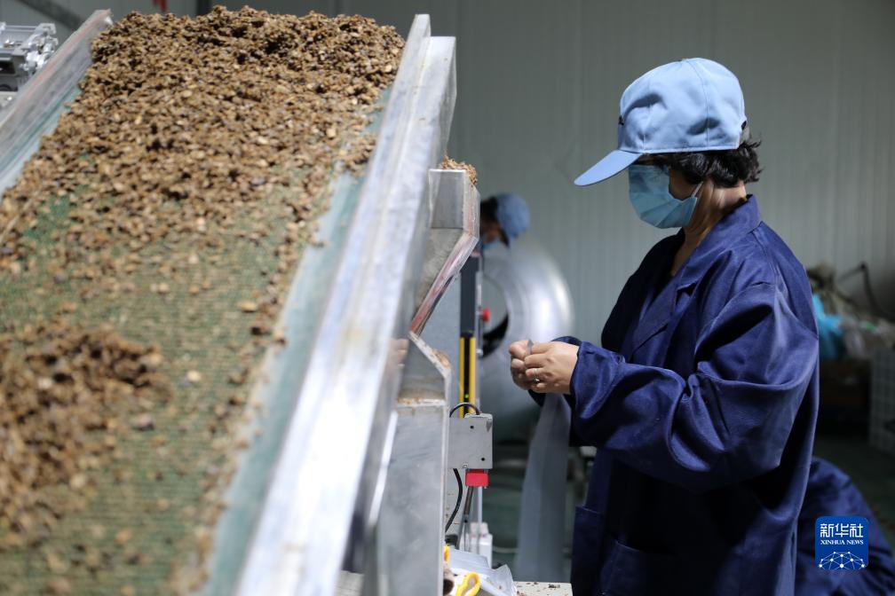 11月29日,在后官寨镇司官寨村食用菌基地,工作人员在食用菌菌种生产线上作业。