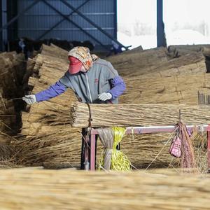 进入冬季,山东省无棣县水湾镇农户利用农闲进行苇帘加工,创富增收。目前,水湾镇已建成芦苇产业园和专业交易批发市场,芦苇年成交量达20万吨。