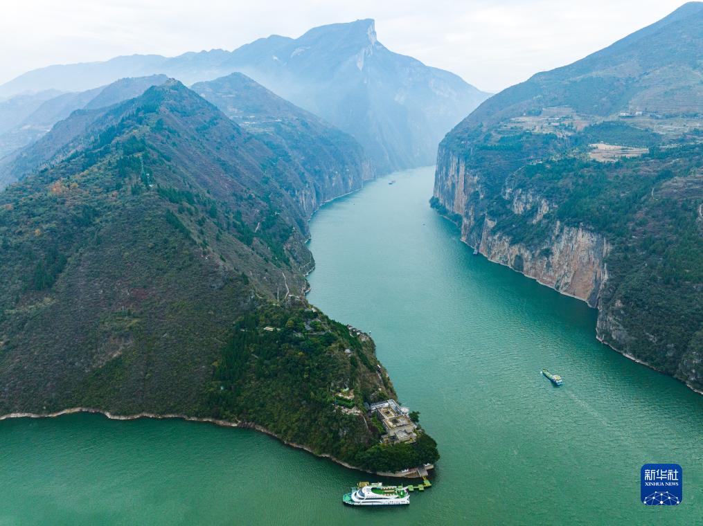 11月29日拍摄的重庆市奉节县长江瞿塘峡风光(无人机照片)。