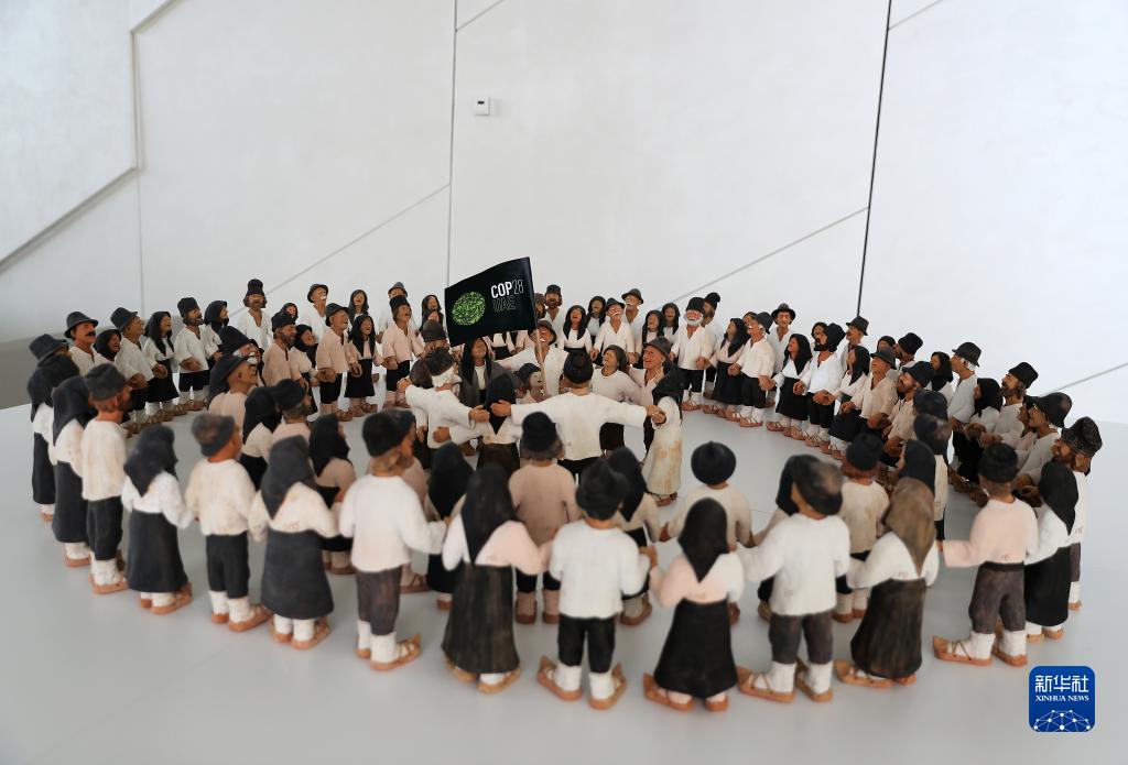 这是11月29日在阿联酋迪拜拍摄的联合国气候变化大会举办地迪拜“世博城”内的一处人偶艺术作品。