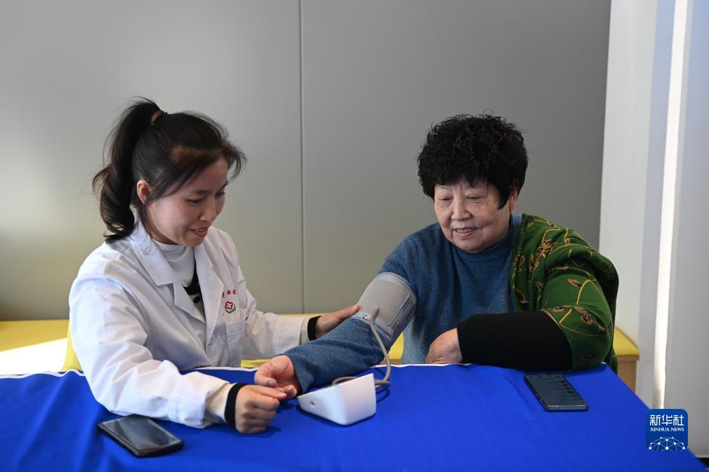 11月29日,医护人员在舟山市定海区“幸福客厅”为老人进行健康监测。