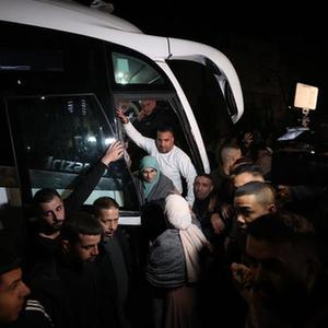 11月30日,载有获释巴勒斯坦被关押人员的大巴抵达约旦河西岸城市拉姆安拉。