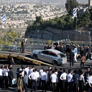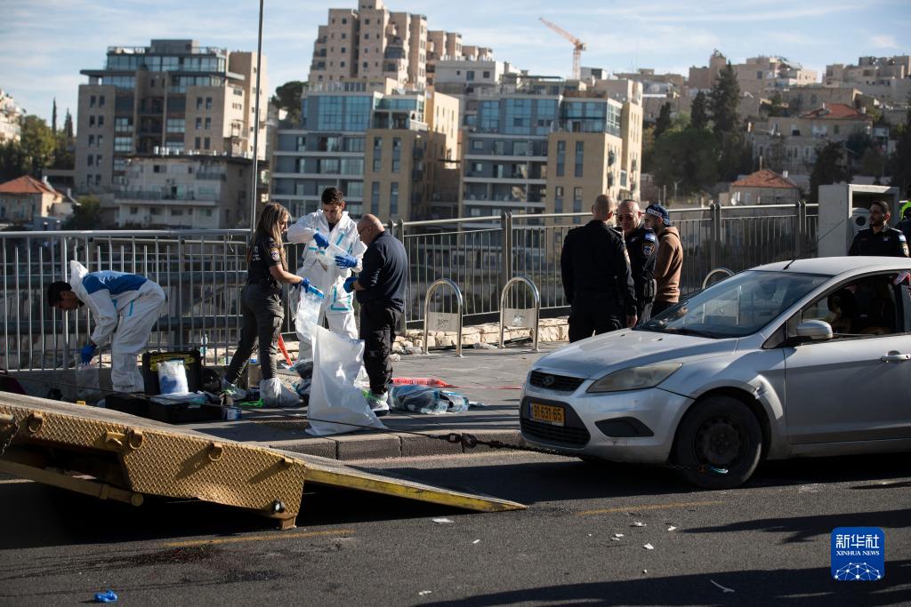 11月30日,在耶路撒冷魏茨曼大街一公交车站,警察在袭击者驾驶的车辆前开展工作。