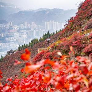 初冬时节,长江三峡重庆市巫山县水域两岸色彩斑斓,红叶似火,美如画卷。