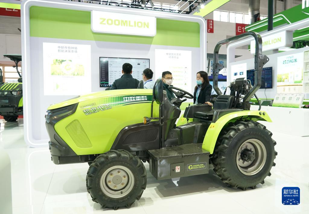 11月30日在链博会绿色农业链展区拍摄的一款电动大棚拖拉机。