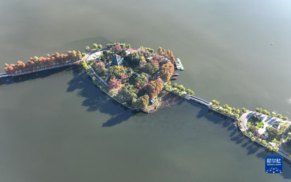 初冬季节,武汉东湖水天相映,色彩斑斓。