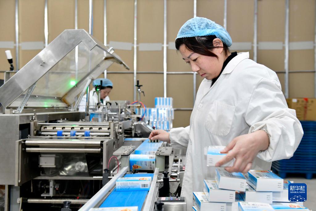 11月30日,在华夏国药(菏泽)制药有限公司,工作人员在成品药分包线上作业。