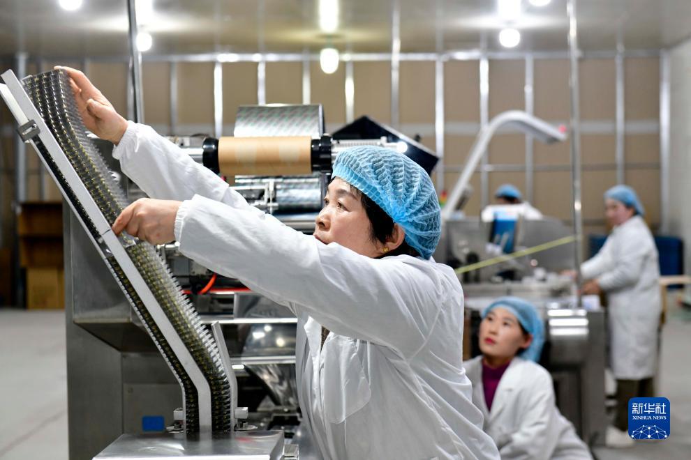 11月30日,在华夏国药(菏泽)制药有限公司,工作人员在成品药分包线上作业。