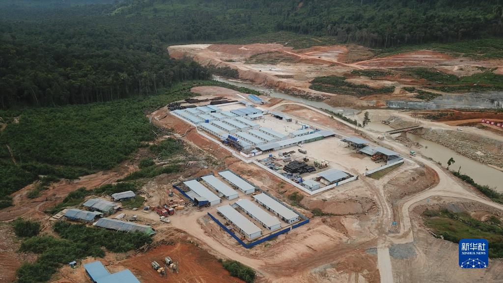 这是11月29日在柬埔寨戈公省特莫邦县拍摄的上达岱水电站施工营地(无人机照片)。